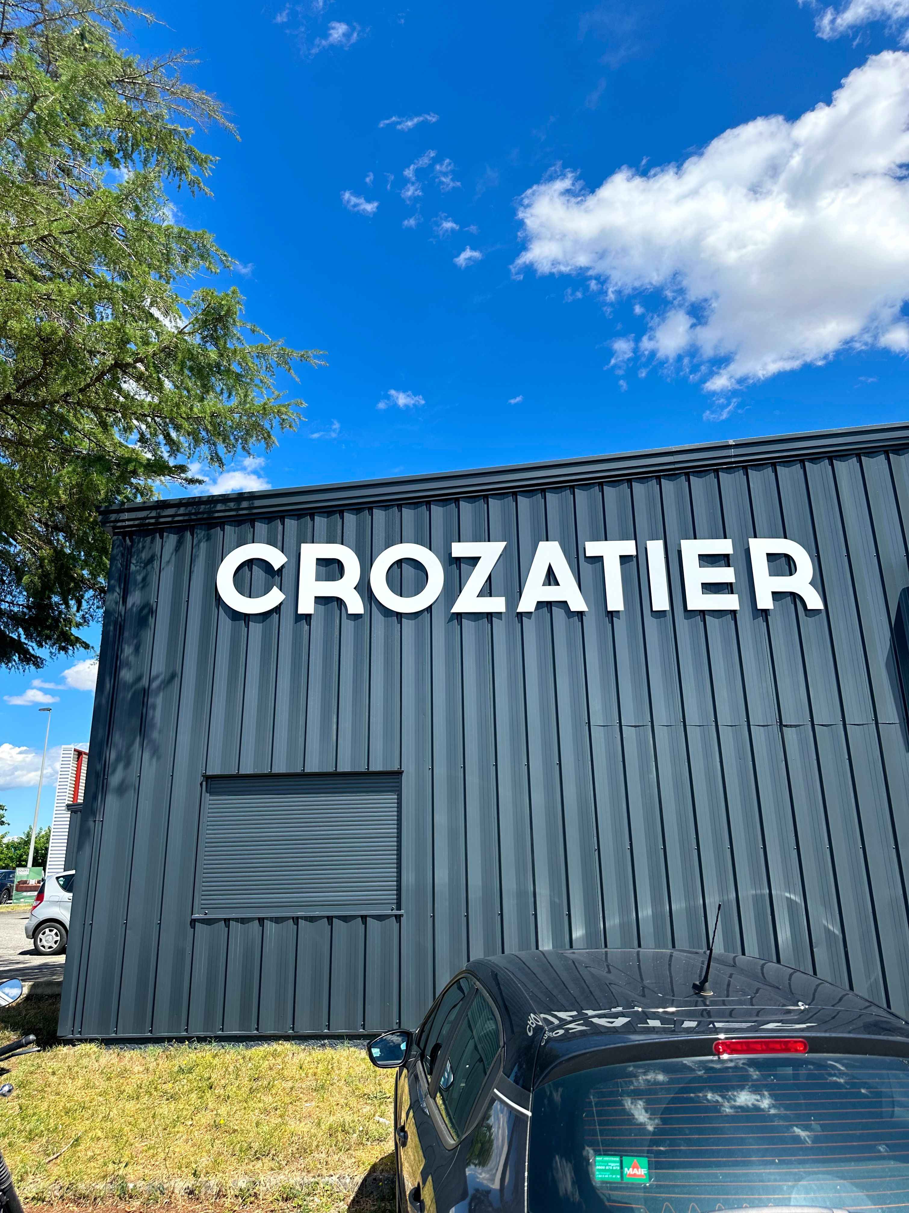 Ce système d’éclairage assure une mise en valeur homogène et raffinée du logo Crozatier et de son slogan.